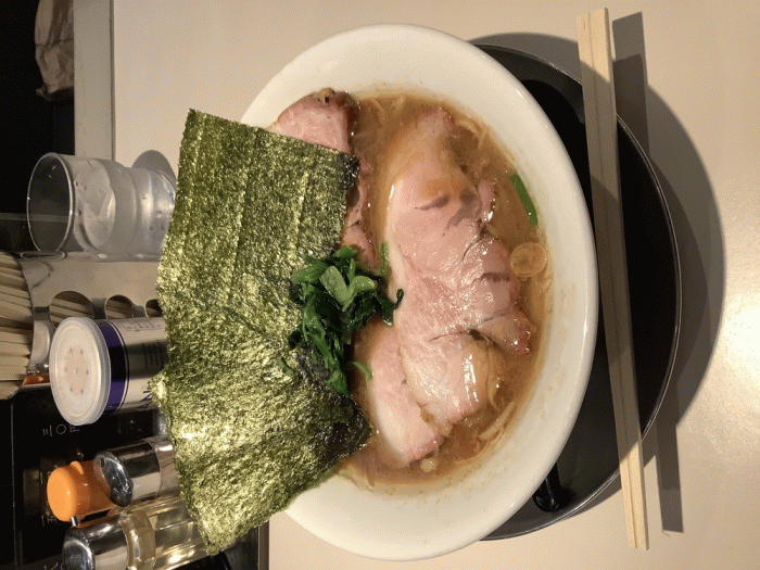 中田製作所、【1月水曜日限定】家系チャーシューメン1200円。1月第2週目の水曜日限定は、家系ラーメン1000円と家系チャーシューメン1200円の2種です。年末の年越し営業で提供された家系ラーメンを今週のみの限定です。濃厚なとろみのあるスープ、中太麺に具材はほうれん草、板海苔3枚、チャーシューは肉感のある燻製チャーシューでした。