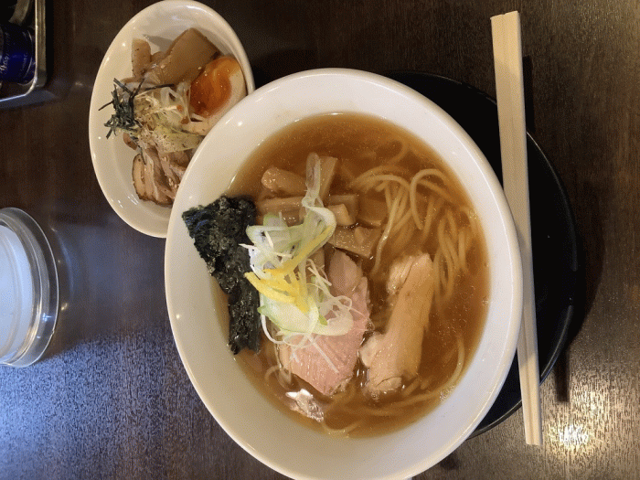 煮干し中華そば八本店、朝ラーメン730円+炙りチャーシュー丼420円。また、朝ラーの値段が上がりました。700円→730円と30円の値上げです。炙りチャーシュー丼も380円から420円と40円の値上げです。また、タッチパネル式の券売機が導入され、PayPayなどのキャッシュレス決裁による支払いが可能となりました。