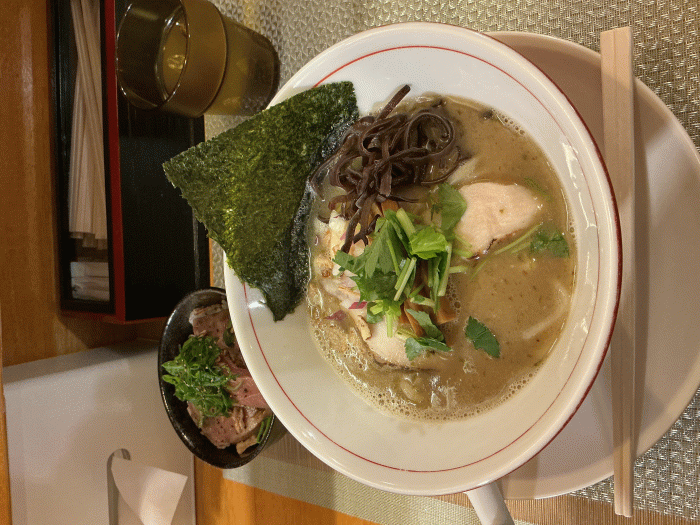 KUBO LABO、【1/11(日)6:00〜11:00限定】煮干しらぁめん(太麺)1000円+和牛お肉ご飯650円。1月第2週目日曜日の朝ラー限定は、煮干しらぁめんです。サビタチ煮干し、サッパ煮干し、ヨコスジフエダイ煮干し、エソ煮干しなど様々な魚介系の煮干しを使用している濃厚な煮干しスープのラーメンです。色々な煮干しが使用されているので濃厚で複雑な味わいです。基本は太麺ですが、細麺に変更可能です。