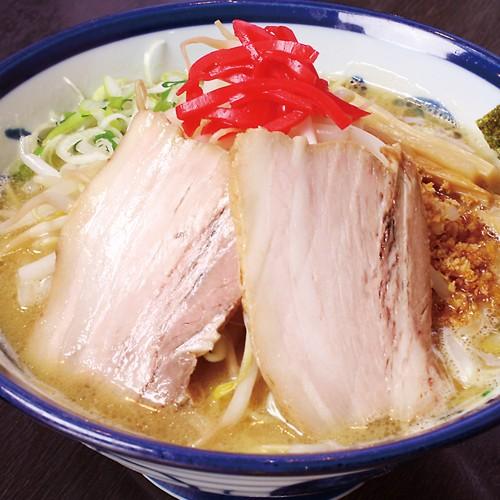 豚骨× 魚介の醤油ベースに唐辛子、辣油、更に刻んだカシューナッツと擦りゴマをプラスして辛さと甘味、風味もアップ。野菜の甘味も加わり美味しい辛さ!!モチモチ太麺にスープが吸いつく自信作。