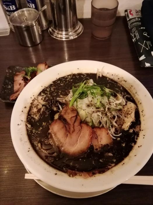 中華そばふじの新津店、新津味噌そば黒910円(限定)+肉盛別皿クーポン。期間限定の新津味噌そばの黒です。白味噌ベースにマー油のスープ、太麺に具沢山の野菜で大満足です。味については全く文句ありませんが、提供時間と高めの値段設定が…。