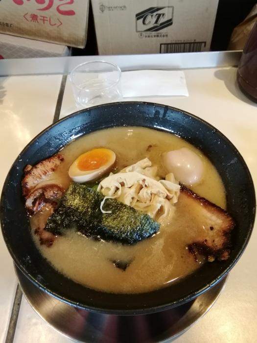 中田製作所、魚介豚骨ラーメン760円(水曜日限定)+炙りチャーシュー1枚150円+味玉クーポン=910円。思い出しました、「いっ○うや」の「か○ね醤油」っぽいラーメンです。今週の水曜日限定も引き続き魚介豚骨です。濃厚な豚骨スープですが、しっかりと魚介の香りがします。炙りチャーシューがちょっと固かったかな?