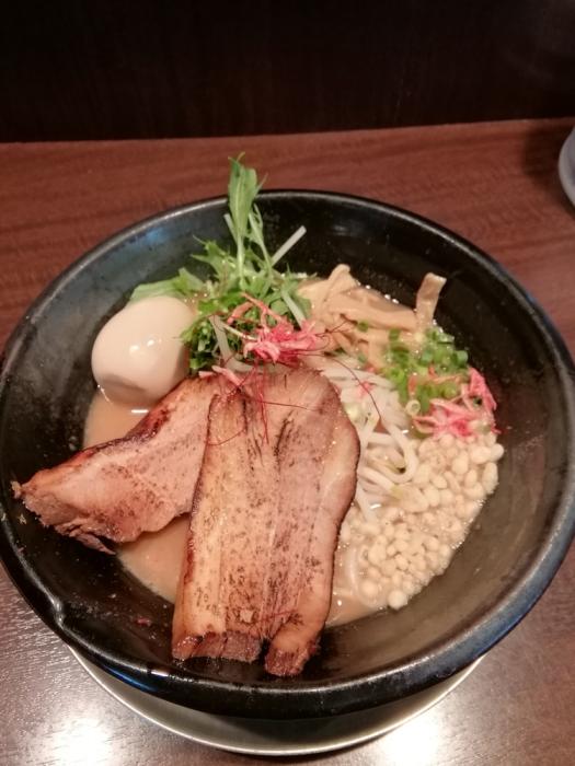 麺や我を、【期間限定】濃厚えびらーめん850円(味玉クーポン)。期間限定は券売機ではなく、現金でした。平成最後のラーメンはこれにしました。一口目から海老の風味が広がります。濃厚なトロトロスープが麺に絡みます。極太の炙りチャーシューも抜群です。