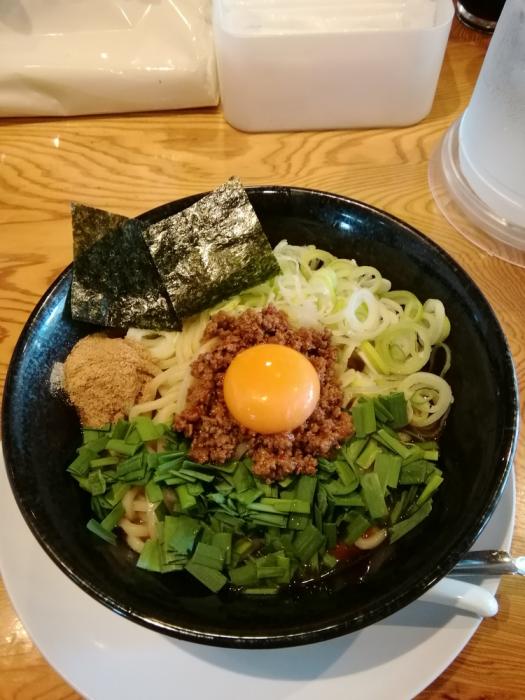 ラーメンしん、台湾まぜそば840円。加茂市のラーメンしんです。燕三条系の背脂の量が選べる背脂ラーメン(太麺)が有名ですが、定番メニューになった台湾まぜそばにしました。以前よりも値段が上がっていました。卓上の調味料(おろしニンニク、しょうが、酢など)で味変できます。