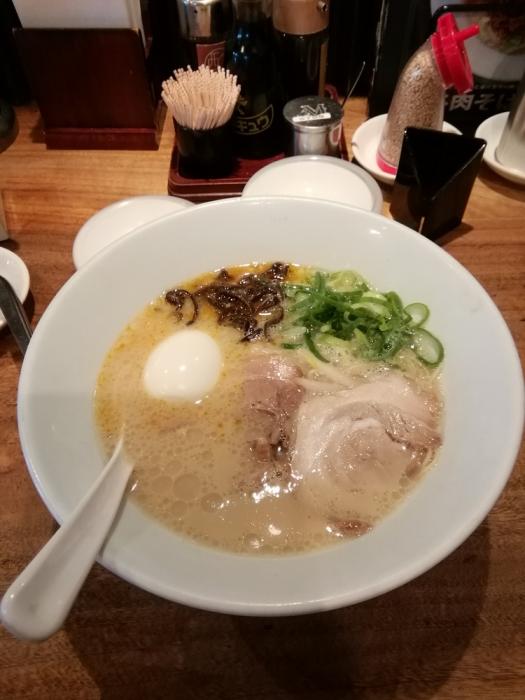 博多ラーメン一風堂、白丸元味720円+味玉クーポン。シンプルに博多豚骨が食べたくなったらここです。最近は濃厚なドロッとした豚骨スープの店が多いですが、さらっとしたスープは一風堂です。