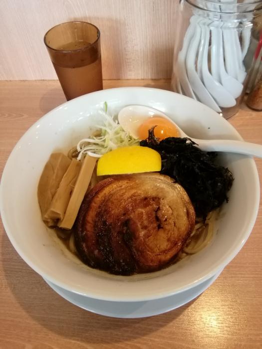 麺や真玄、【限定】煮干し和え麺830円(並盛)。限定麺で濃厚な煮干しだれに太麺が合います。途中で、黄身やレモンを混ぜて味変します。麺の大盛、特盛、追い飯、追い麺全て無料です。今回は並盛で追い麺(中細麺)でシメました。