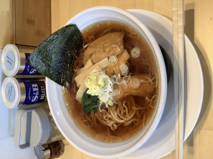 【初入店】麺屋八戒、生姜らあ麺700円。リニューアル後初めての来店、室内が清潔でおしゃれな感じです。生姜らあ麺を注文しました。具材の上におろし生姜が乗っていますが、中にはさらに刻み生姜で風味が加わります。