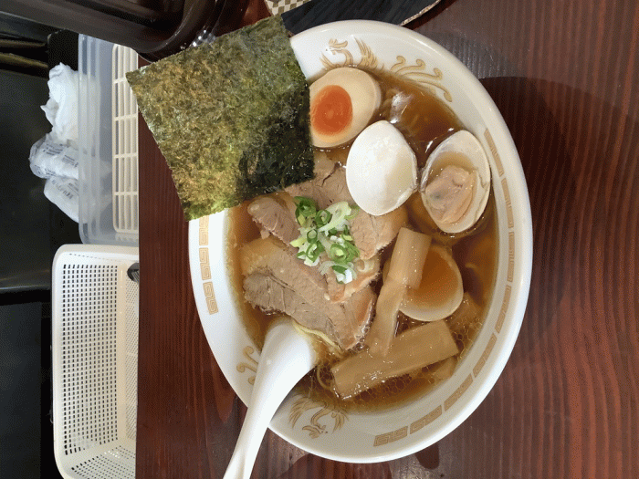 麺屋ゆゆ多、鶏と蛤の醤油らーめん750円+チャーシュー1枚クーポン。旨味が凝縮されたスープに細麺の相性が抜群です。トッピングにゆず生姜を入れると風味が変わってさらに美味しくいただけます。チャーシューも絶品です、クーポンで1枚増量しました。