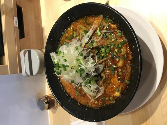 久しぶりの新発田での休日ランチで初めて来店です。寒かったので辛いラーメンを頼みました。2倍は50円ましですが、店員さんに聞いてやめました。やはり辛いですね。でも,甘さと旨さで美味しいです。麺は太麺でバッチリ合います。ひき肉とニラと玉ねぎが炒めてあり,長ネギスライスが美しく乗っています。痺れる甘辛がクセになりそうですね。餃子もナイスでした。