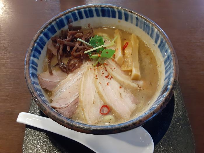 スープは濃厚で、煮干しがガツンと効いてます。しかし全く臭みやえぐみが無い。濃いのにスッキリしていて飲み干せてしまう、素晴らしいスープです。もちろん麺もスープに合っています。味の染み込んだとろとろのチャーシューも超絶美味しいです。少しだけ散らさせた唐辛子も良いアクセントになっていました。