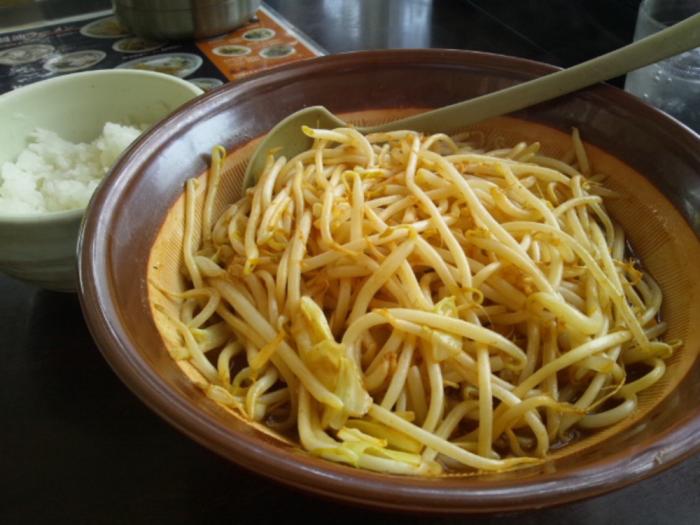 鉄板の味噌ラーメン。今日は何だかモヤシが多め。でも、問題はありません。いつも通りに美味しくいただきました。左上の方にちょこっと見えるのは、東横サービス券で半ライスのそのまた半分。これが、最後をシメてくれるメシですね。写真を撮った後で更にサービスの黒餃子4個入りが来ました。またまた、満腹。