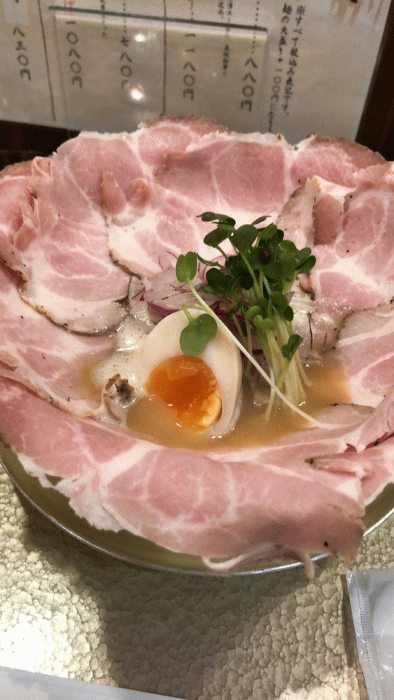 器から溢れ出すたくさんのレアチャーシューが口の中でとろけていきました。他とは違った新しいチャーシューでした。