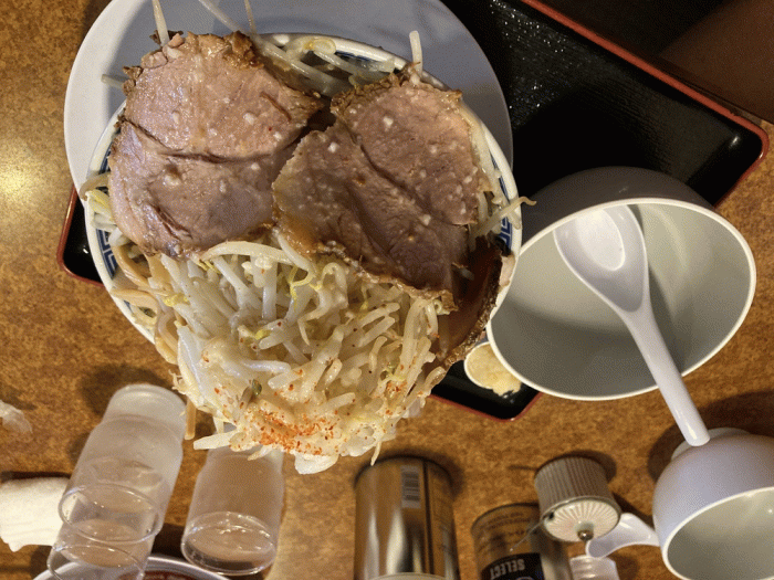 がっつりG麺トリプルニンニク多めを注文しました。かなりの食べ応えですが、スープまで完食。後半、コショウや辛味を加えて味変し、飽きずに食べれます。