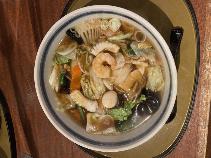 お昼にはいつも満員。でも食べたくなる三宝亭さんの五目うま煮麺。餡が麺に絡みとっても美味しかったです!