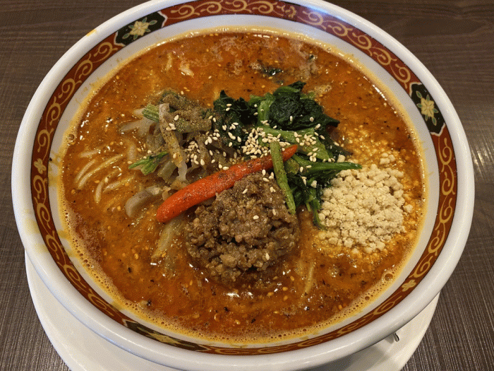 いつもの極上!!四川担々麺の醤油ベース、シビ辛1をオーダー。