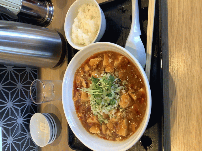 らーめんののや三条本店、【期間限定】旨辛麻婆麺(小ご飯付)1000円。期間限定の旨辛麻婆麺です。汁なしタイプの麻婆麺で、辛さはラー油のみのまろやかで、麺を食べ終わった後に残った麻婆餡をライスと一緒にいただくとちょうどいい感じです。
