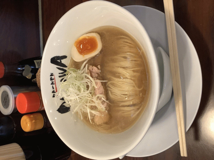 RA-MEN OGIKAWA亀田店、清湯豚骨らーめん750円。定番メニューとなった清湯豚骨らーめんですが、クリアなスープに豚骨のエキスが凝縮されており、パツパツの細麺も好みです。クリア豚骨は、シンプルな具材が合っているので、チャーシューとねぎ、半玉でも十分ですが、キクラゲや青ネギ、レモンなどの味変や替玉があってもいいと思います。