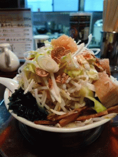 券売機で技郎 820円を購入。メニューに中太麺との記載があったが、やはり二郎系ラーメンにしてはかなり細