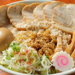 8時間煮込んだとろけるちゃーしゅーをたっぷりトッピング!!背脂の甘み・コクが詰まった煮干し醤油スープに肉の旨みが更に加わり、フレッシュな玉ねぎもたっぷりで絶妙なバランス♪より奥深く美味しさがアップした贅沢な一杯!! |