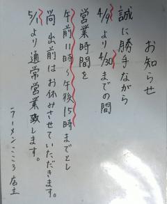 中華そばこころよりお知らせ