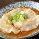 名物!よだれ餃子 もっちもちの皮が特徴の餃子は皮から手作り、ぷっくり茹でた餃子に山椒と胡麻のオリジナルソースでお召し上がりください♪ビールのおつまみにも最高の一品!! |