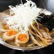 海燕全部のせラーメン 980円 白髪ねぎ、玉ねぎ、味玉、メンマ、岩のり、チャーシューと超贅沢なトッピング!!燕系背脂らーめんに相性バッチリなトッピングと共に、海燕のらーめんを思う存分ガッツリお楽しみ頂けます♪ |