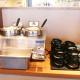 締めにも妥協しない、出汁香る2種の割りスープ 店内の中心にはセルフサービスで2種の割りスープをご用意!!自慢の鰹ダシと日替わりで随時経変更となる割りスープ。つけ麺のラストのフィニッシュにお楽しみください。 |