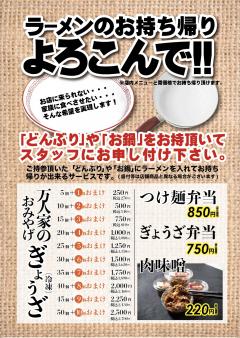 ラーメンのお持ち帰り喜んで☆丼または鍋をお持ちください!!