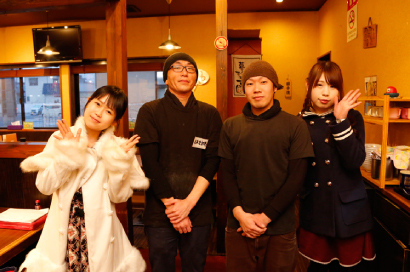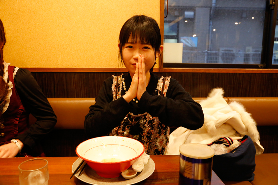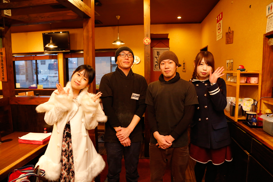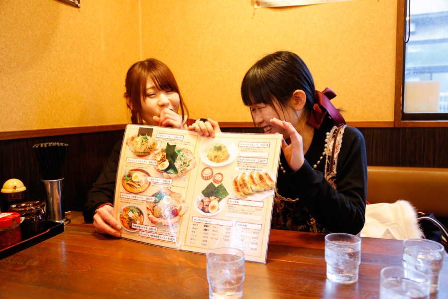 ちなみに、らーめんを待つ間「だるまやさんって、前にネオちゃんと来たことあるよね。」と話す綾ちゃん。実はネオちゃんが三代目麺ガールとして活動していた時、二人で一日に6軒のラーメン店をまわった事があったんです。今回この時点で、既にその記録は更新したわけですが、それにしても一日に6杯とは、脱帽のひとことに尽きますね…。詳しくは2015年のネオちゃんのブログページをご覧ください。
