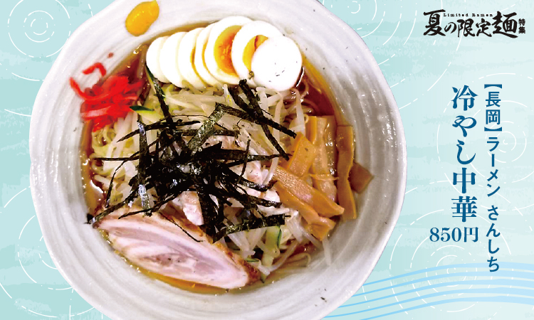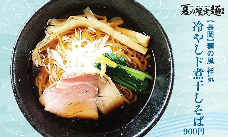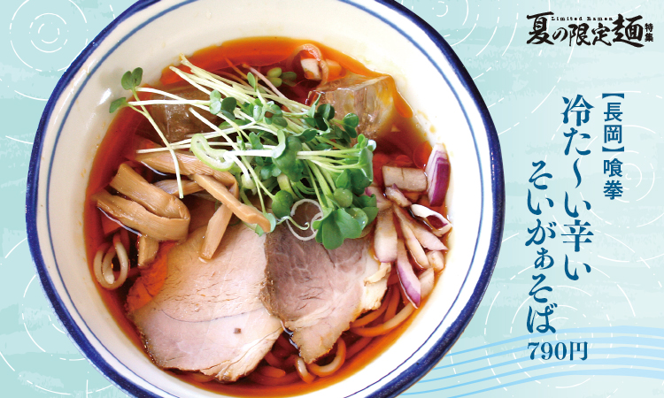 辛さをプラスした冷たい生姜醤油らーめんが新登場!!昆布、鰹からとったスープに生姜と辛味でアクセント。あっさりに拘った冷たい長岡生姜醤油!!