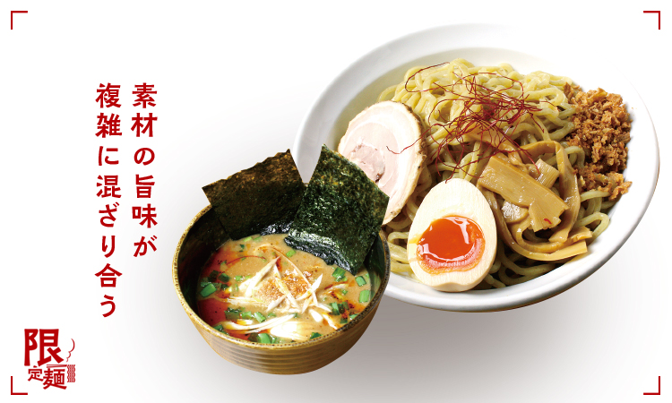 お店人気の2種のメニューのイイトコドリをしたコラボ麺!!濃厚味噌のコク深さと魚介の風味、辛つけ麺のじんわりくる辛味…。辛いけど旨い、箸が止まらない限定麺。 ■辛さは1号、2号、V3より選択