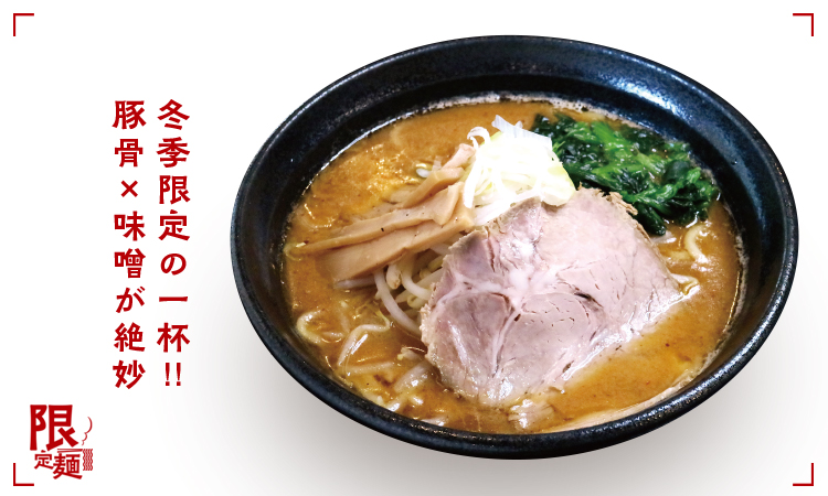 下処理や火加減に一切の妥協なし!!臭みが一切ない滑らかでクリーミーな豚骨スープに、こだわりの味噌ダレで仕上げた豚骨味噌が冬季限定で味わえる。
