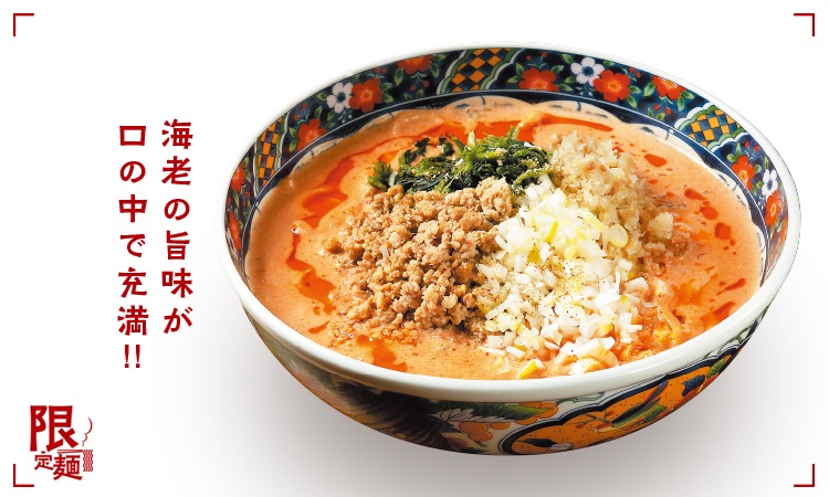 毎年冬の定番。担々麺はフタツメらしい濃厚の上行く極濃!!エビの旨味と香り、自家製の肉味噌との相乗効果で旨さを極めた限定麺。