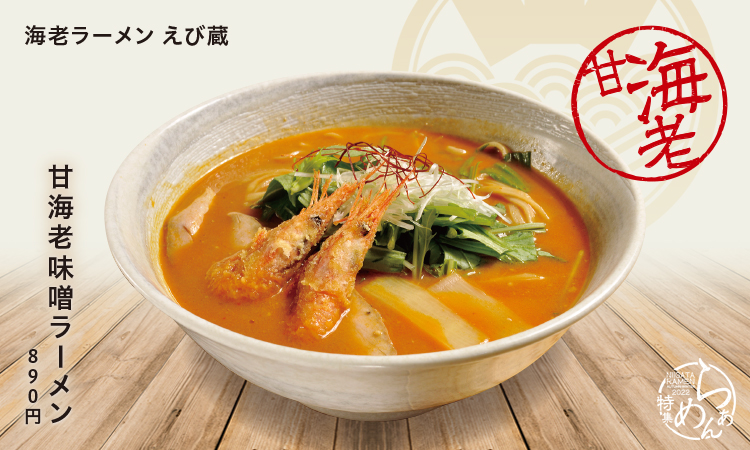 海老の旨みがギュッと凝縮!!海老出汁スープに独自ブレンドの味噌ダレで仕上げた一杯。