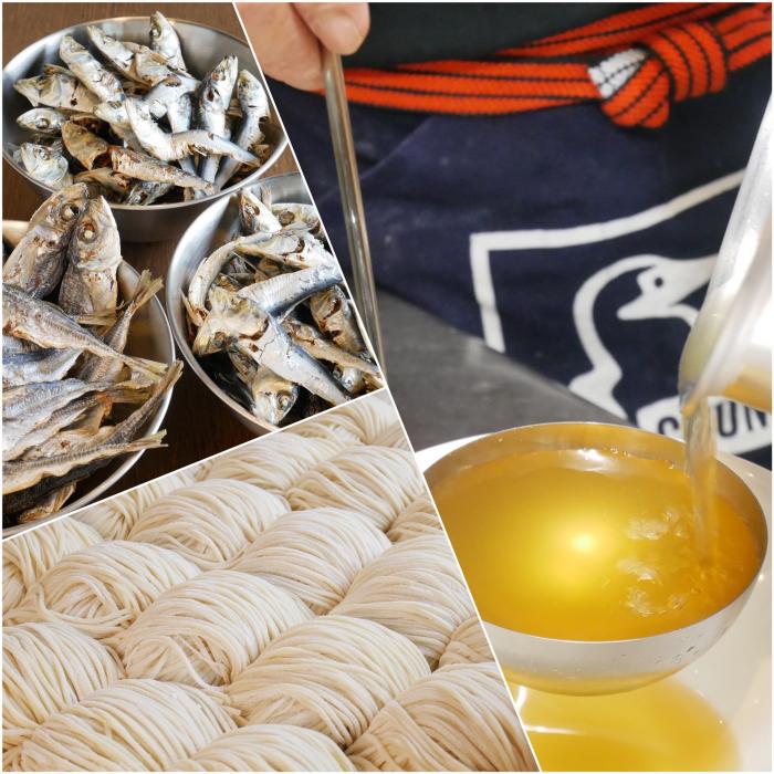 素材から調理法までこだわり抜いた二本軸!産地から厳選した数種の煮干しを配合し、弱火でじっくりと旨味を抽出した淡麗スープの「極み煮干らぁ麺」。薩摩産本枯本節二年物を中心に数種類の削り節をブレンドし、豚骨・鶏ガラと共に強火で炊き上げた濃厚スープの「白湯本節らぁ麺」。