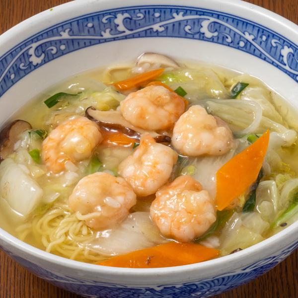 プリプリな海老と野菜の旨味と甘味がスープり混ざりあった優しい味わいの塩スープ。熱々の餡との絡みは抜群です。