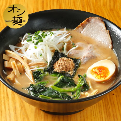 奥村家自慢の豚骨スープに煮干し、節類の旨味を合わせたWスープ!魚介&野菜の油を加え風味と味わいUP!