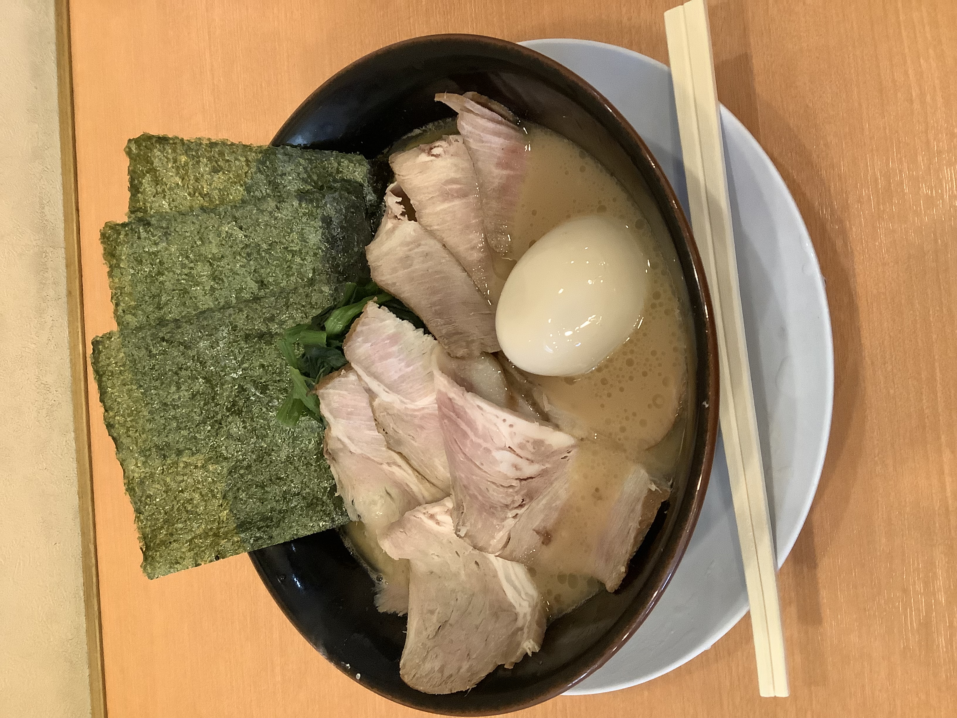 家系といえばのほうれん草や海苔をはじめ、わかめ、チャーシュー、ネギなどのトッピングを全部乗せた贅沢でお得な一杯!!