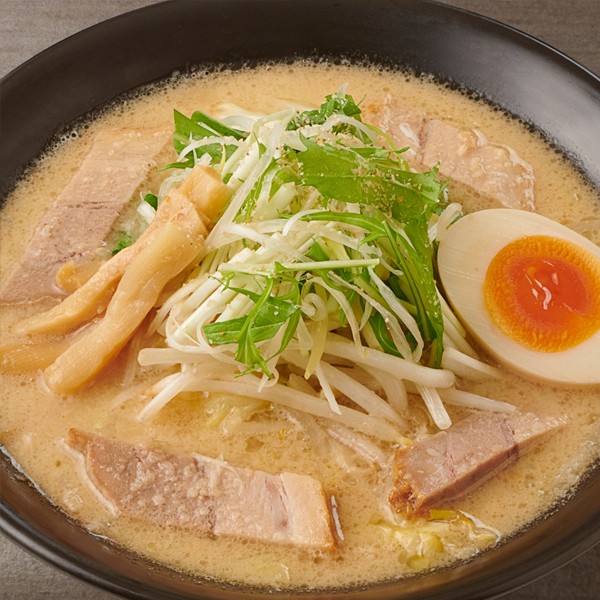 米こうじがたっぷり入った北海道白味噌を使用した、濃厚でマイルドな味わい。 旨味が詰まったコクのある芳醇なスープは、後味スッキリでとても食べやすい美味しさです。 野菜はシャキシャキと歯応えが良く、焼豚は脂の甘みにスープが馴染んで口の中でホロホロととろけます。 白味噌のほんのり甘く熟成された旨味がよく絡み、風伯の極旨絶品【太麺】がより堪能できる一杯です。 “風伯はしろみそ”との呼び声も高いお勧めの名品をぜひ一度ご賞味ください。