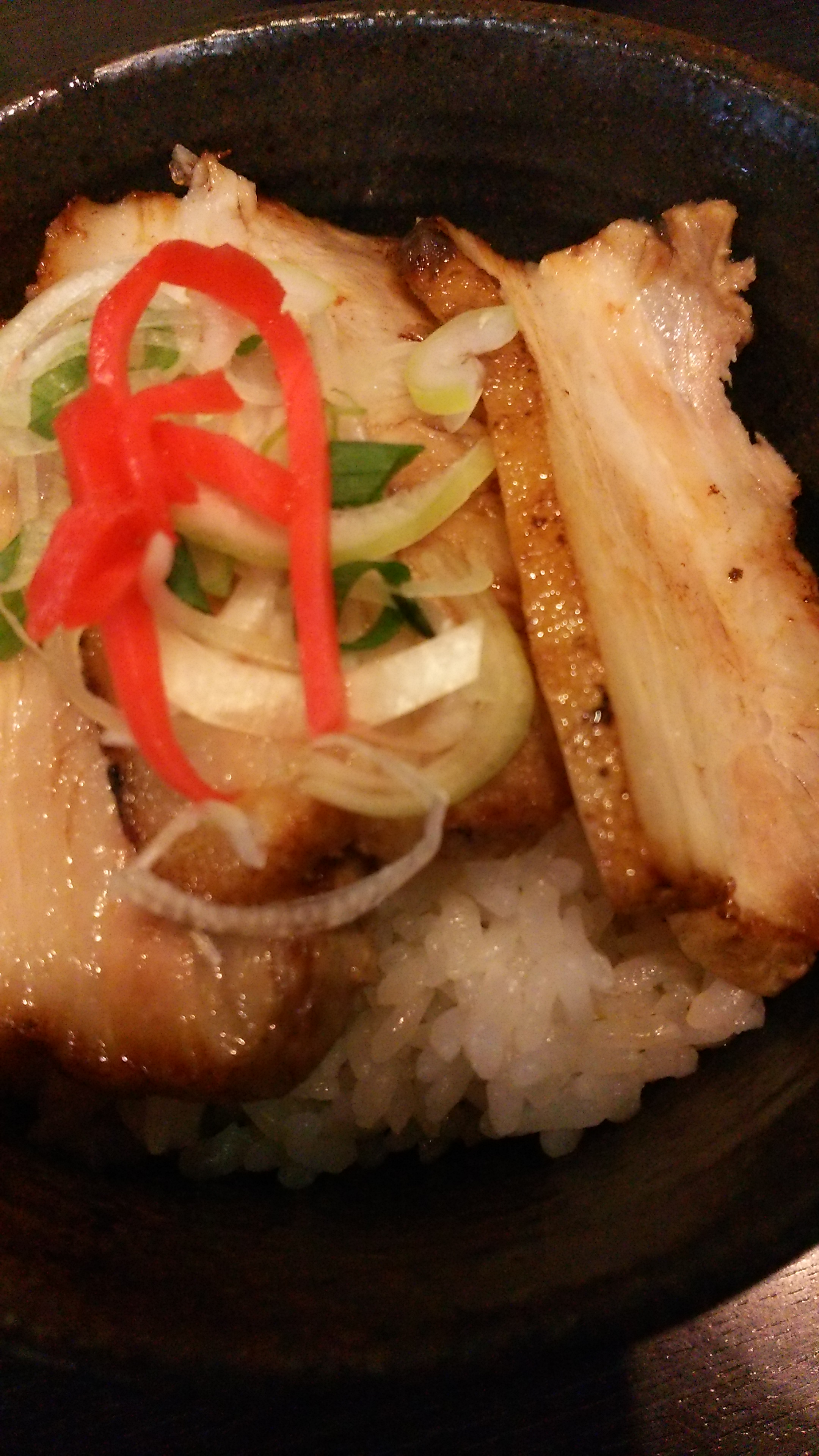 ぶっちぎりの旨い一杯!!動物系と魚介のWスープは、ちょっぴりトロミがありこのトロミがなんともいえず丁度良く旨い!!柚子が少し入ってるため風味もアップ。シャキシャキのもやし、柔らかなチャーシュー、アクセントに揚げネギな どトッピングも満足!!